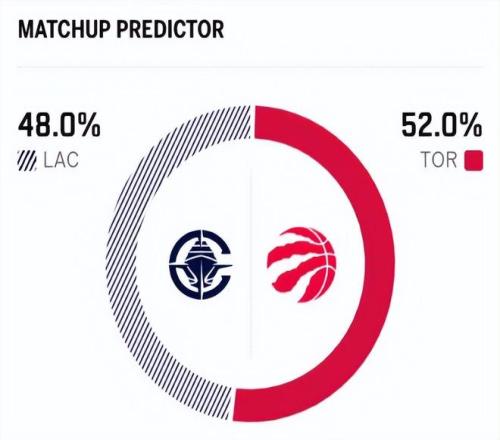 最让人担心的是,两队总计13人进伤病名单,今日也算是一场残阵对决。两队近五次交锋,快船取得4胜1负的战绩,优势明显。赛前,美媒ESPN对本场比赛进行了胜率预测,快船队胜率仅有48.0% ,稍占劣势,猛龙队胜率则为52.0% 。