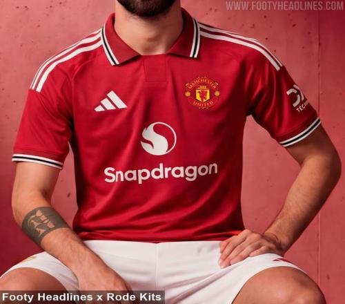 曼联2026-2027赛季的主场球衣依然延续了俱乐部的传统红色,象征着激情与荣耀。球衣的主色调为鲜艳的红色,体现了曼联作为英超顶级豪门的独特气质。与往常一样,白色和黑色成为了设计的辅助手段,白色细节用来勾勒领口和袖口,黑色则在肩膀和侧边部分进行了点缀,整体设计既简洁又充满力量感。此设计不仅承载了曼联悠久的历史,也彰显了球队的现代风貌。