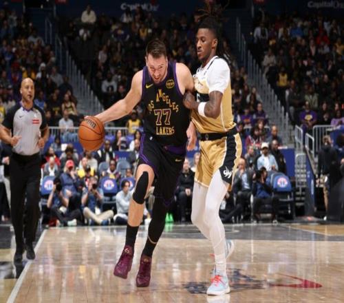 节末东契奇和卡林顿对轰三分,半场结束时,湖人77-48领先奇才,东契奇半场就拿到26分11篮板11助攻的三双数据。东契奇也以18分4秒拿到三双的成绩,刷新湖人队史最快纪录!进入下半场,老詹继续助攻艾顿扣篮,拉拉维亚补篮,詹姆斯随后上演一记空接背扣,又将奇才打停。奇才溃不成军,东契奇又连续跳投命中!中段老詹一打二强行造犯规后,东契奇继续扔三分,艾顿吃饼,湖人最多领先奇才38分!后半段双方维持35分左右陷入拉锯战,奇才在节末打出一波小高潮,三节战罢,湖人108-84。