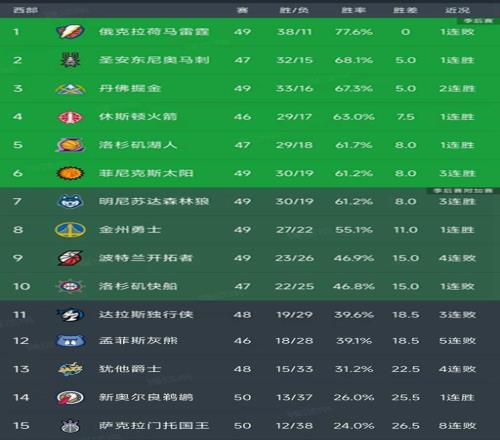 西部最新积分榜